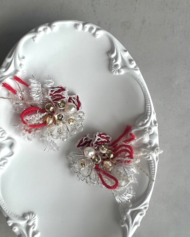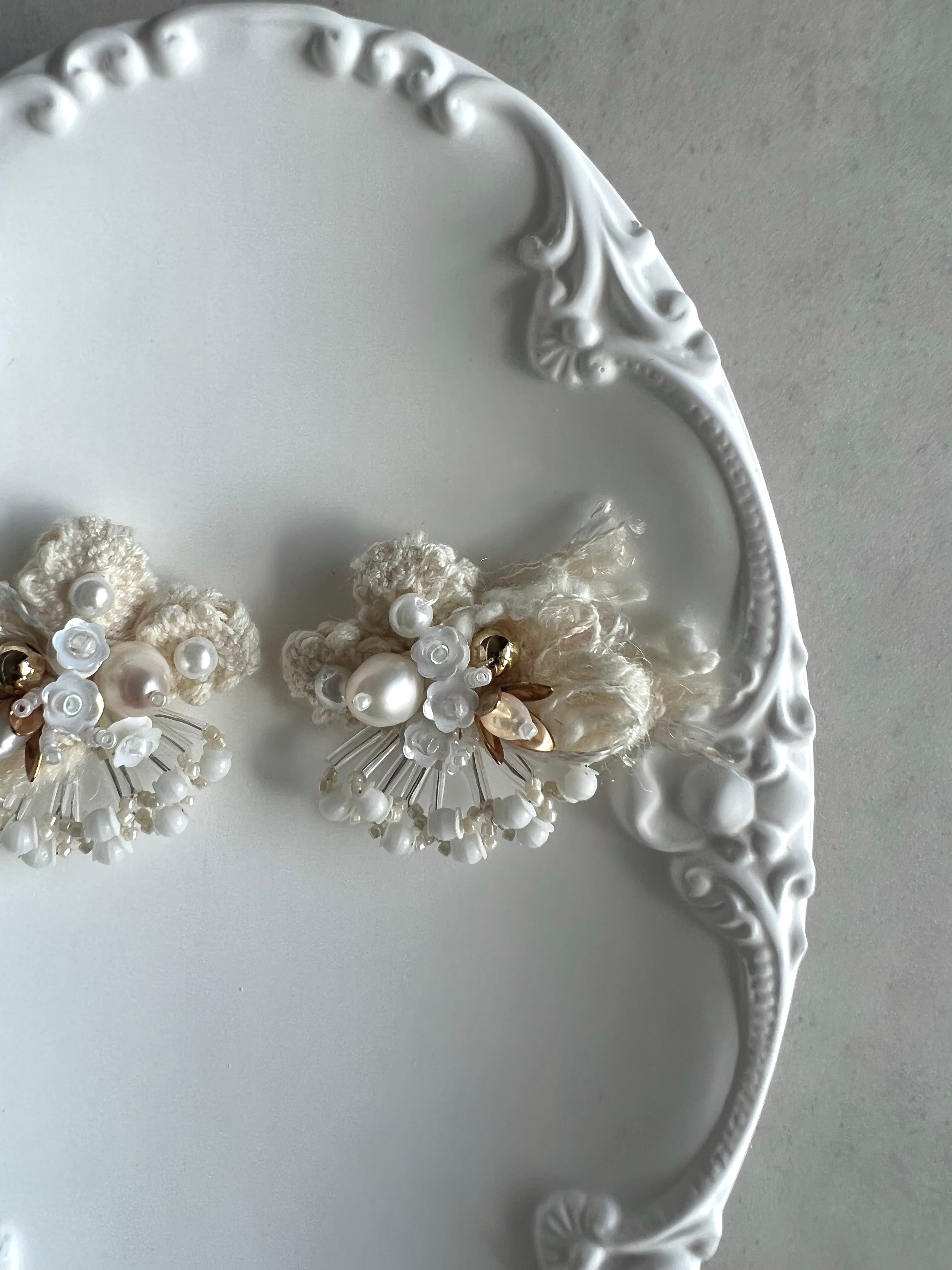 ※こちらは下の白色のピアスのページになります 一つ一つ丁寧に縫い付けたオリジナルアクセサリー olivia.bijou限定の特別なデザインピアスです♡ イヤリングに無料変更できます イヤリングに変更する場合は備考欄にご記入ください 何もない場合はピアスでの発送となります。 ピアス素材:ニッケルフリー イヤリング素材:真鍮 ※こちらのピアスは一つ一つ手作業で作製している為、同じ位置にパーツやリボン、また天然素材のパーツを使っている為、形やビーズの大きさはそれぞれ 異なります。ご了承の程よろしくお願いいたします。 ◇お取り扱い方法 olivia.bijouのアクセサリーは一つ一つ 手作業で作られております。 ガラスビーズ等繊細なパーツで作成しているため 引っ張ったり落としたりしないよう お願いいたします。 また、濡れた際はタオルで優しく押すように 水分を取り風通しの良い場所で乾燥させてください 他何か気になることがこざいましたら InstagramのDMにてお問い合わせください