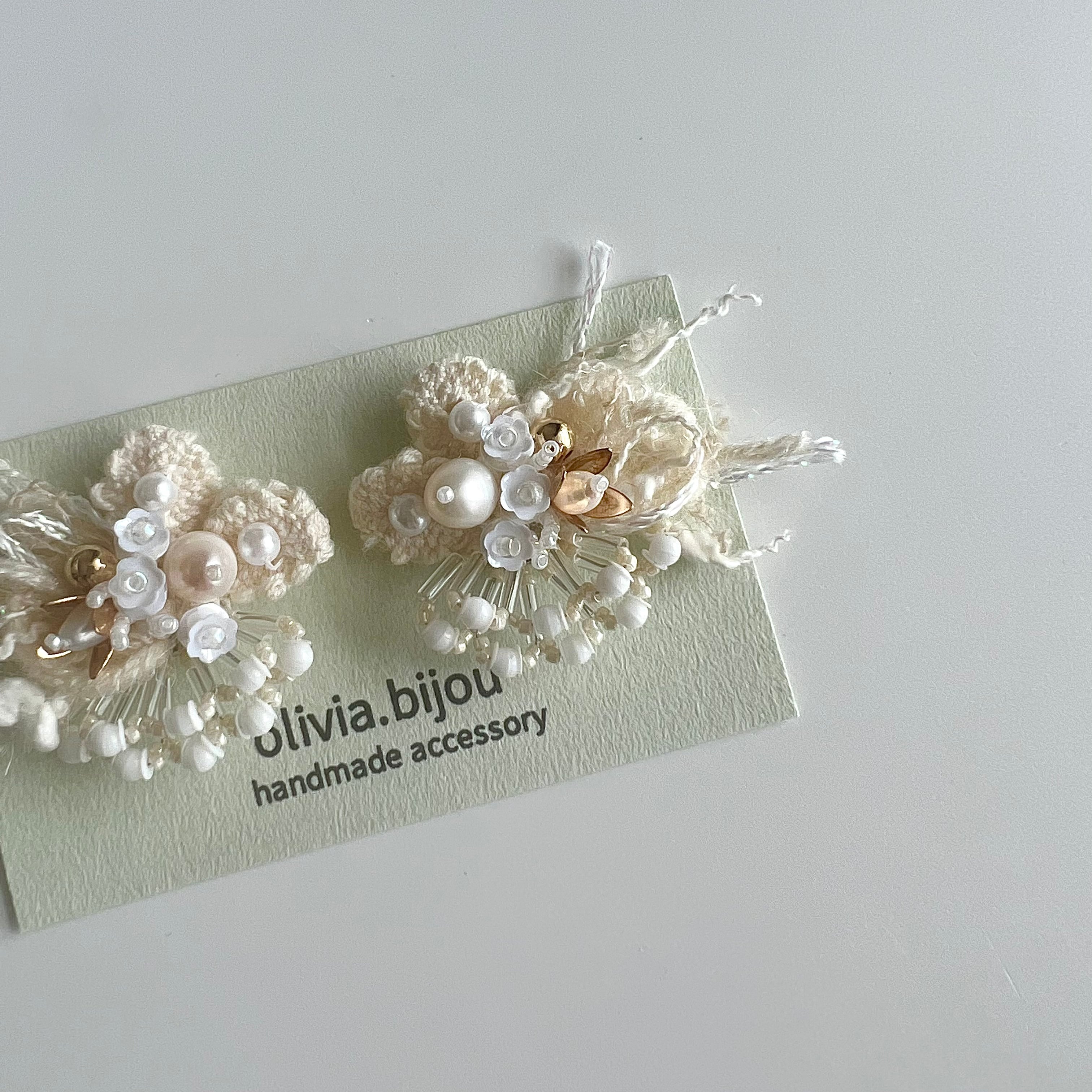 ※こちらのピアスは一つ一つ手作業で作製している為、同じ位置にパーツやリボン、また天然素材のパーツを使っている為、形やビーズの大きさはそれぞれ