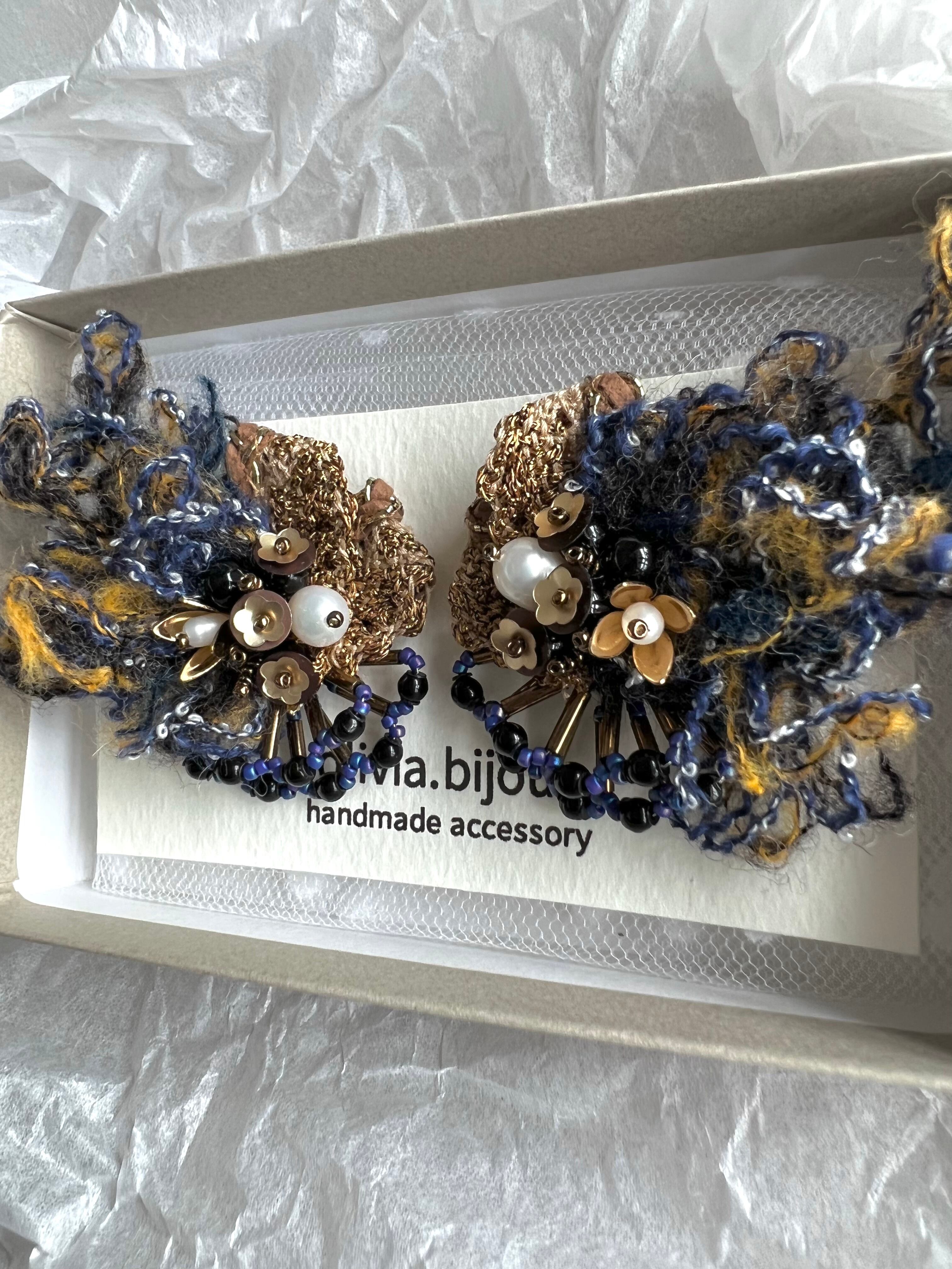 こちらのピアスは一つ一つ手作業で制作しているため、パーツの配置や形、大きさはそれぞれ若干異なりますことをご了承ください。