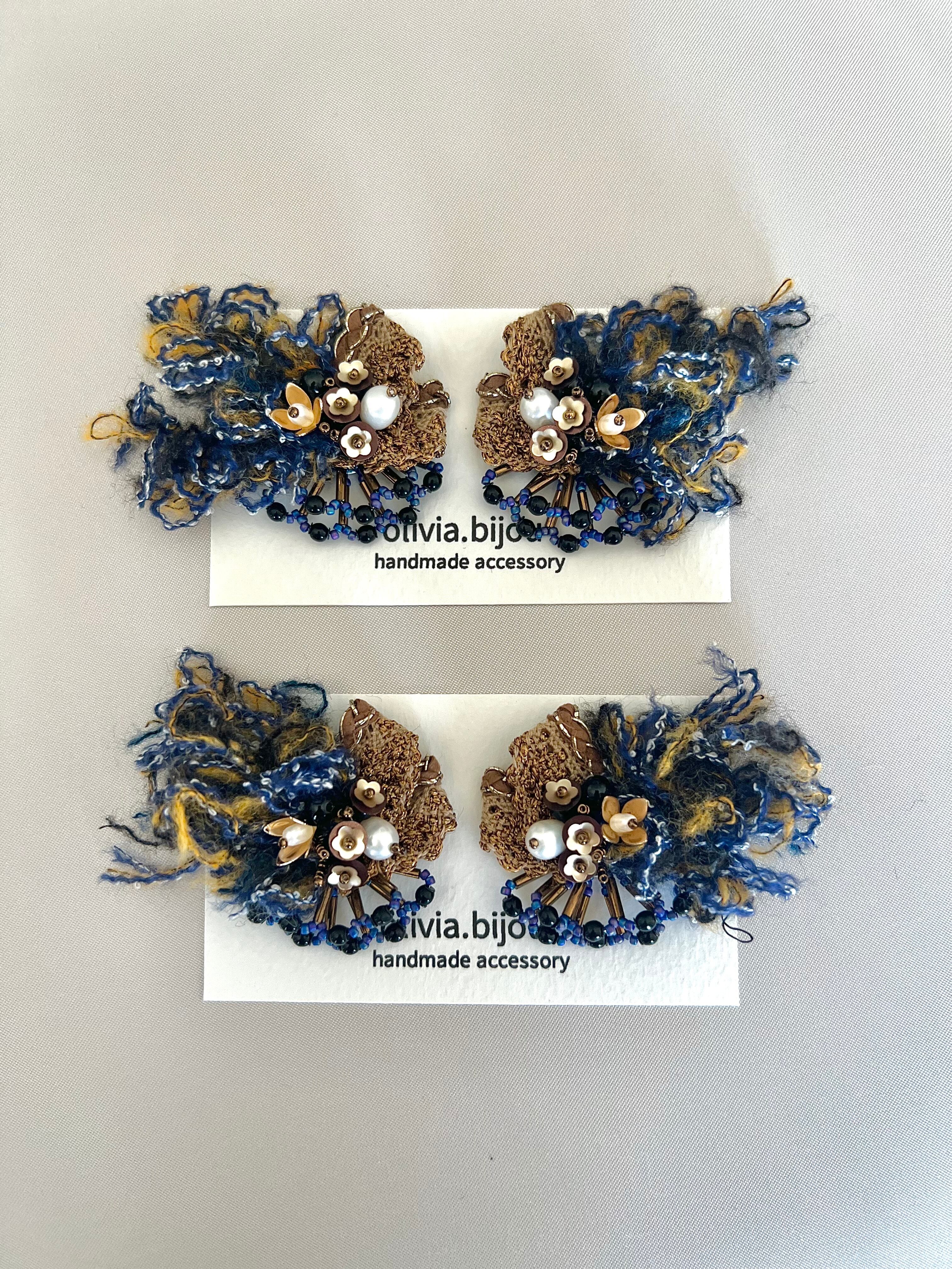 ボリュームのある蒼い糸が特徴のピアスです