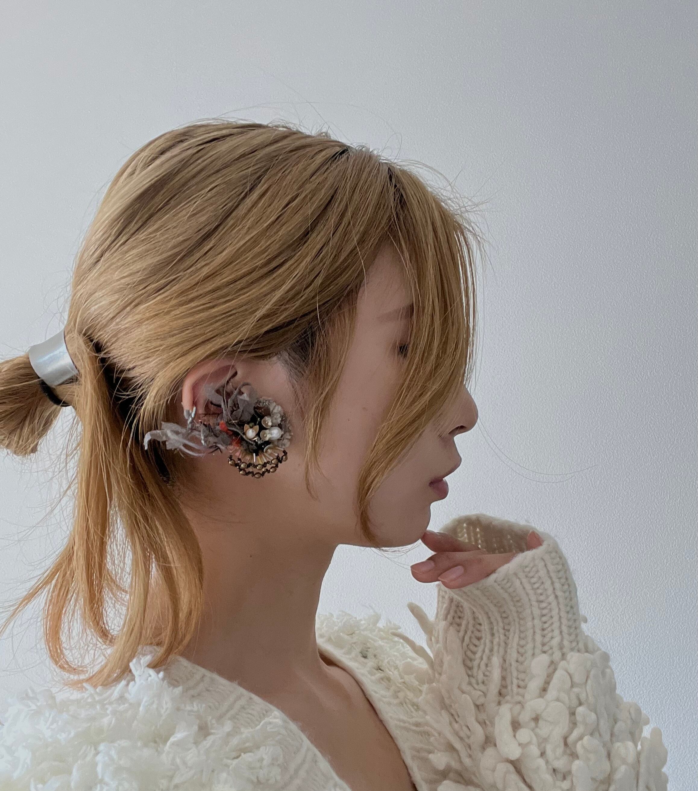 こちらのピアスは一つ一つ手作業で制作しているため、パーツの配置や形、大きさはそれぞれ若干異なりますことをご了承ください。