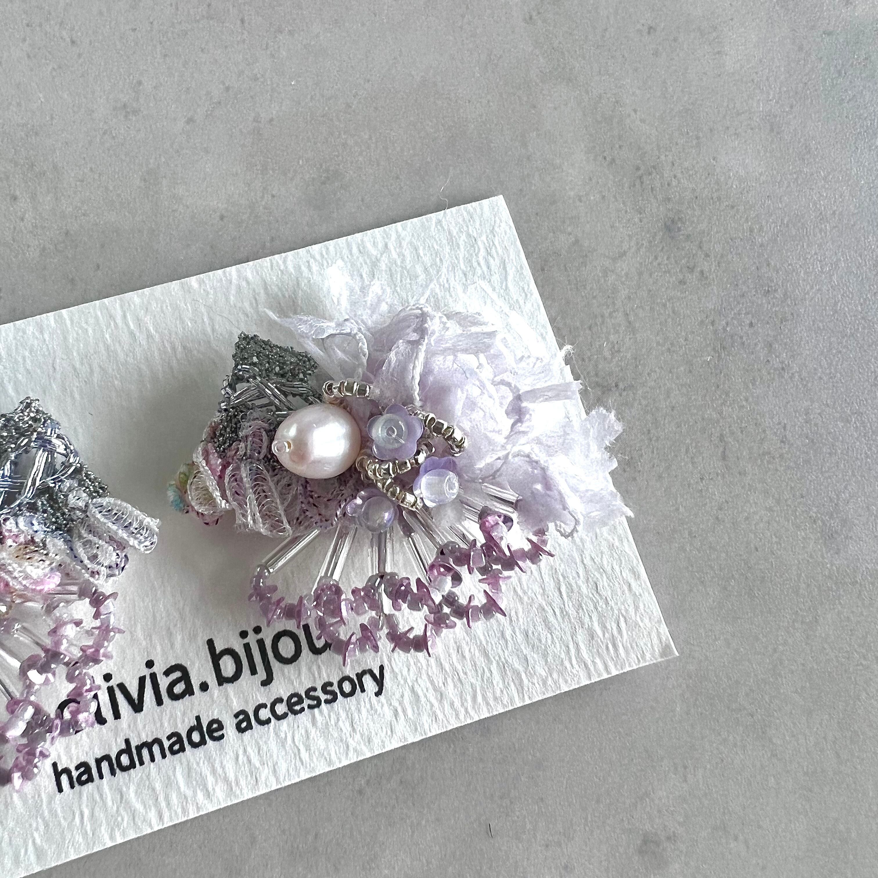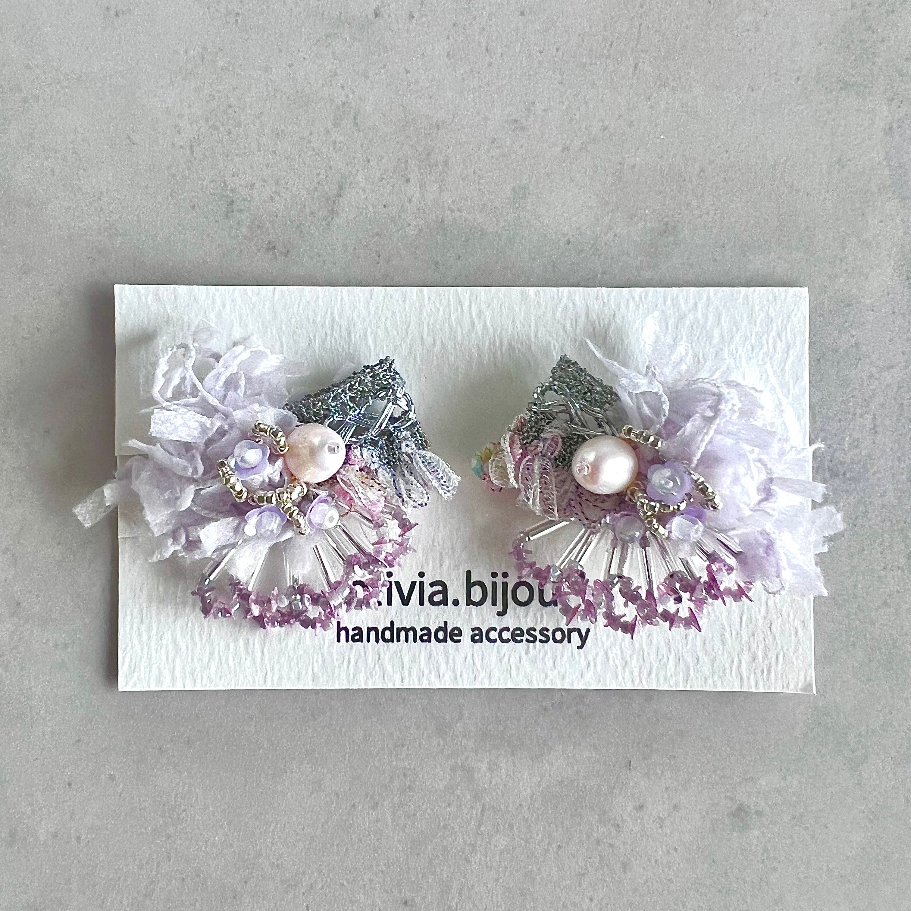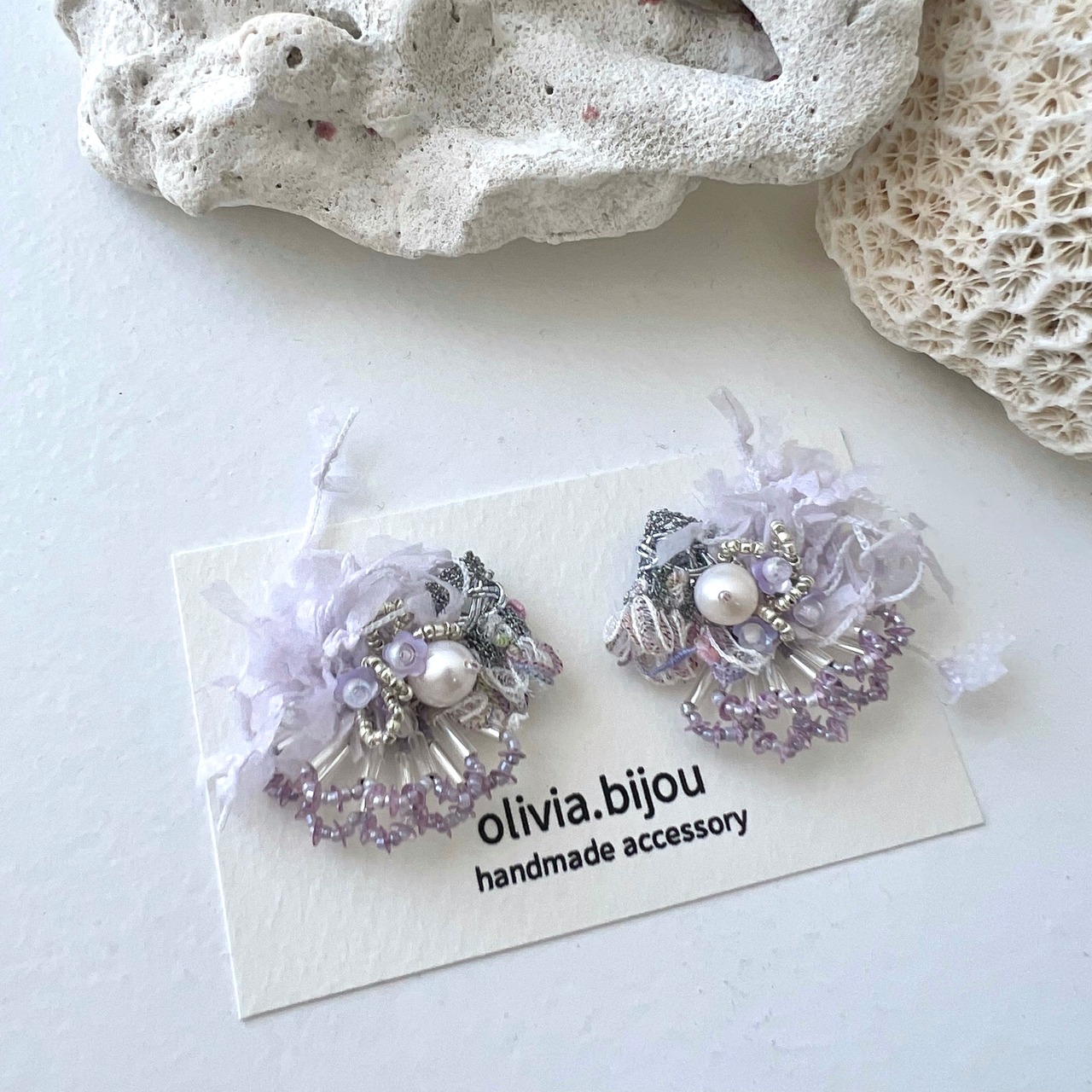 ※こちらのピアスは一つ一つ手作業で作製している為、同じ位置にパーツやリボン、また天然素材のパーツを使っている為、形やビーズの大きさはそれぞれ