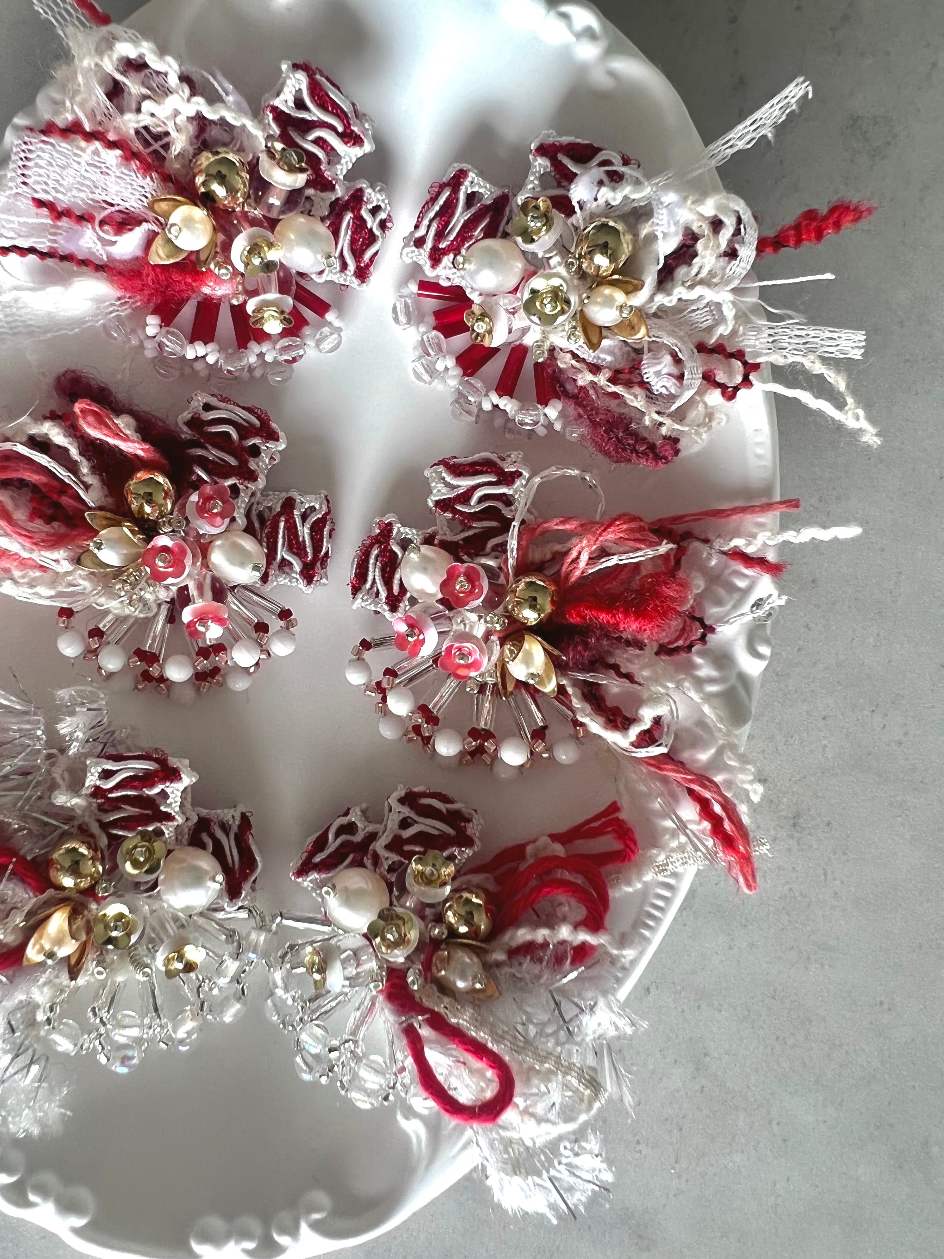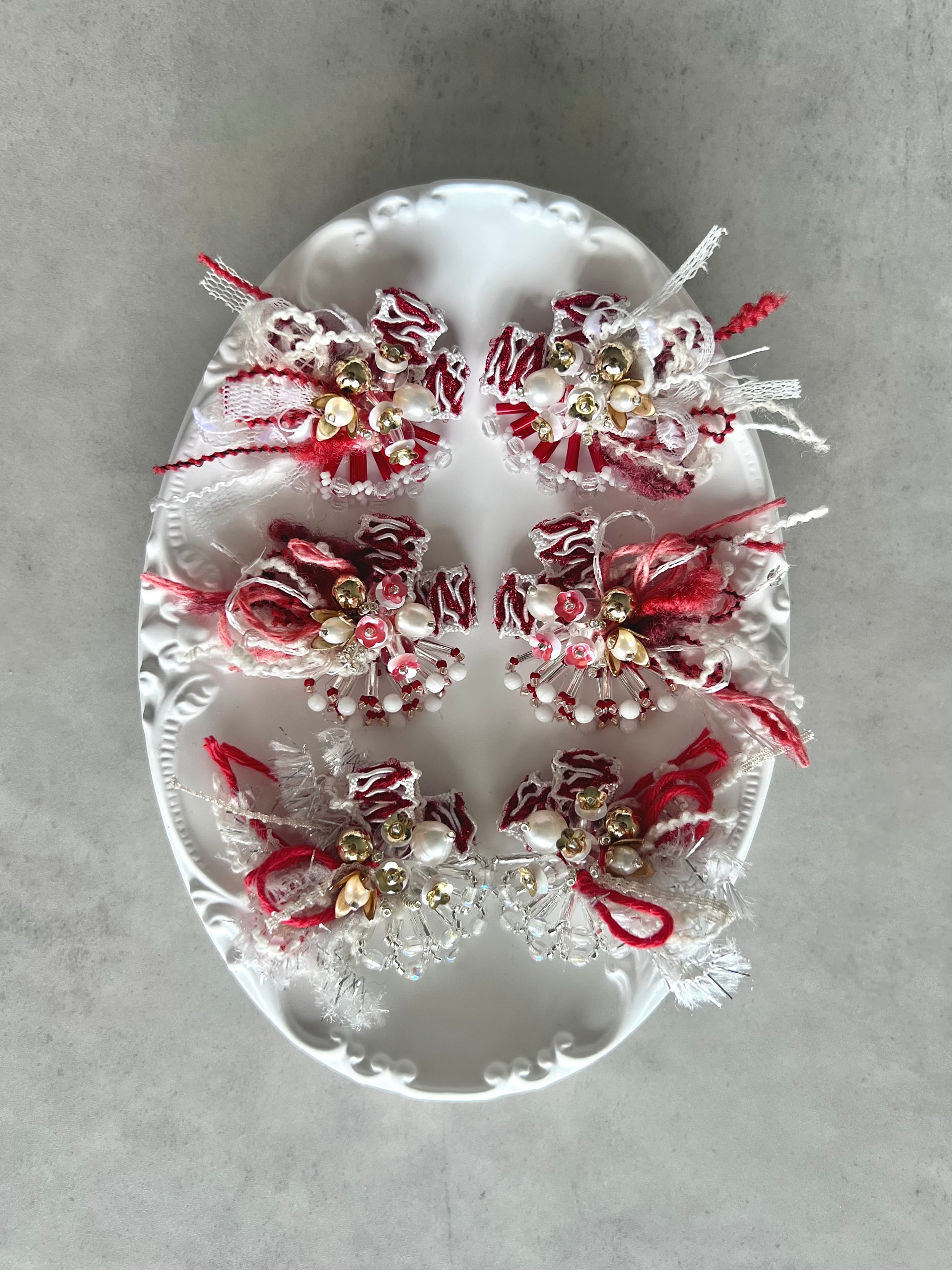 一つ一つ丁寧に縫い付けたオリジナルアクセサリー