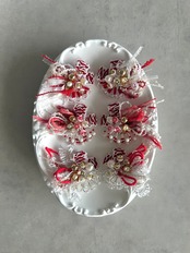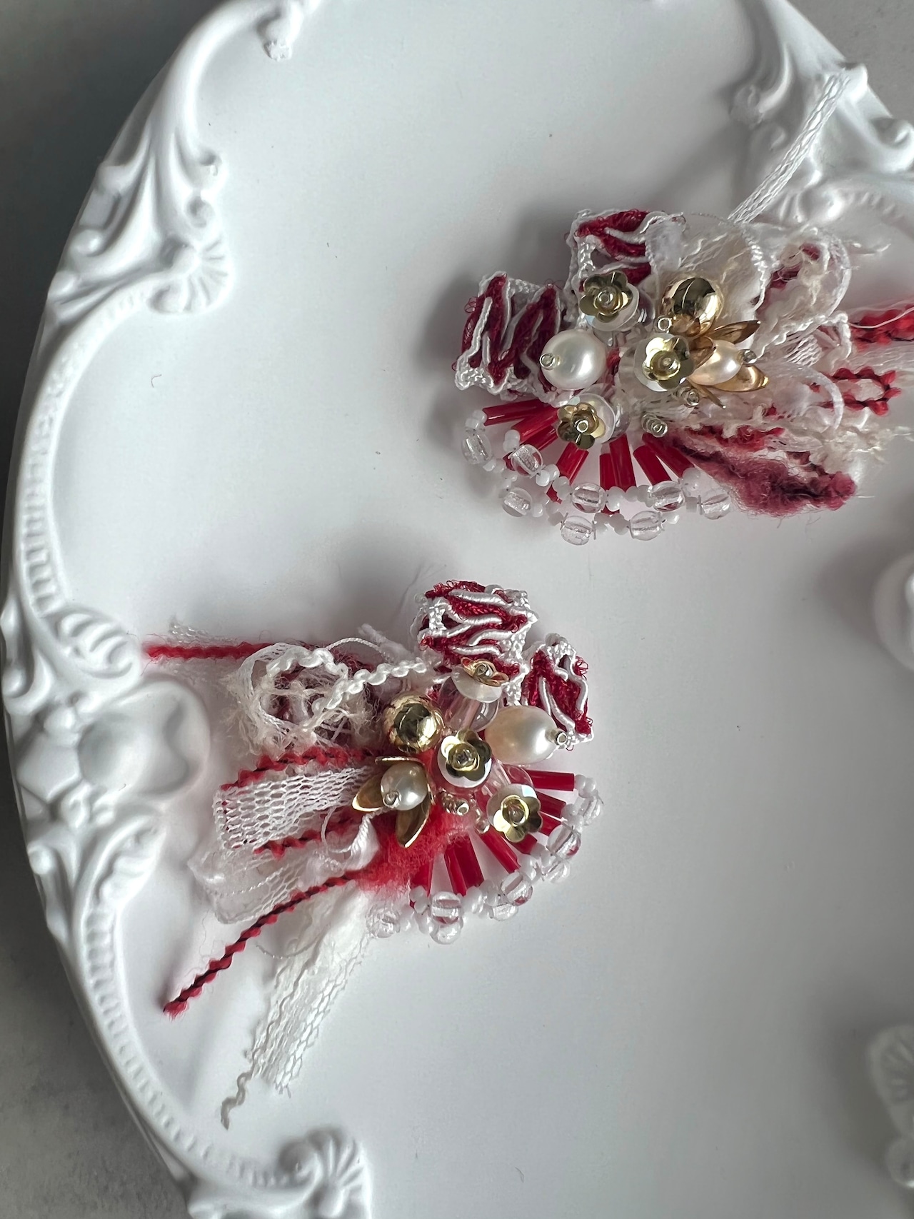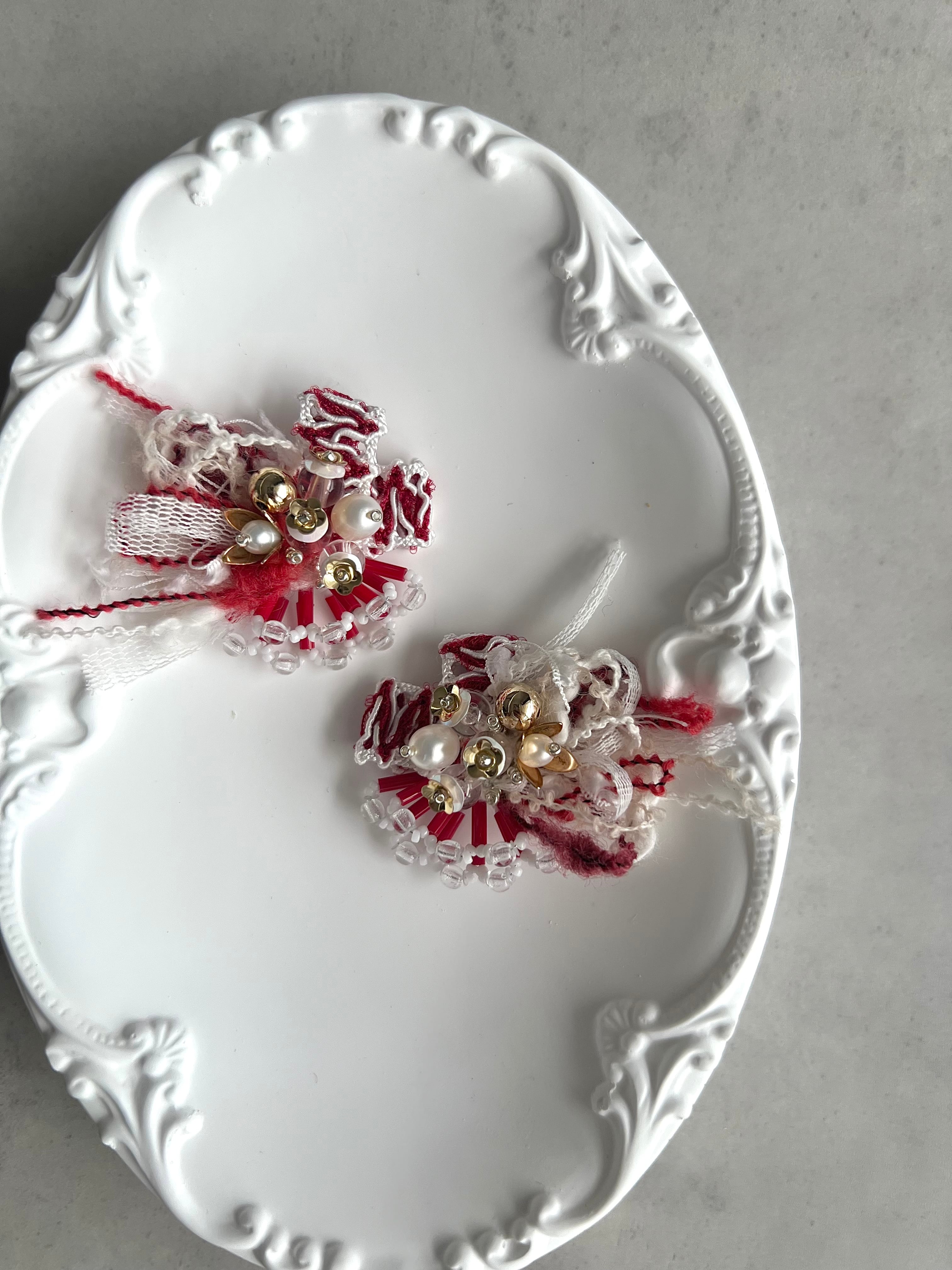 ※こちらのピアスは一つ一つ手作業で作製している為、同じ位置にパーツやリボン、また天然素材のパーツを使っている為、形やビーズの大きさはそれぞれ