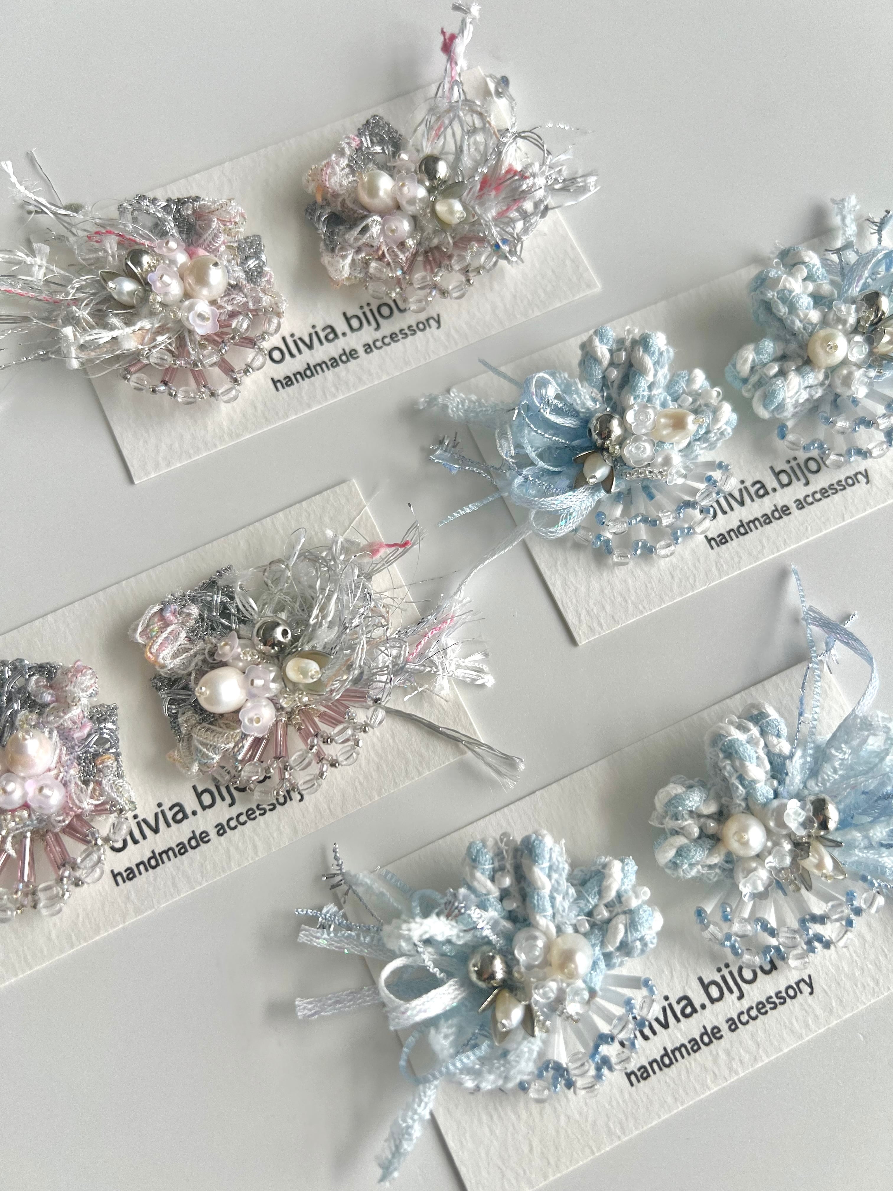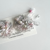 ※こちらのピアスは一つ一つ手作業で作製している為、同じ位置にパーツやリボン、また天然素材のパーツを使っている為、形やビーズの大きさはそれぞれ