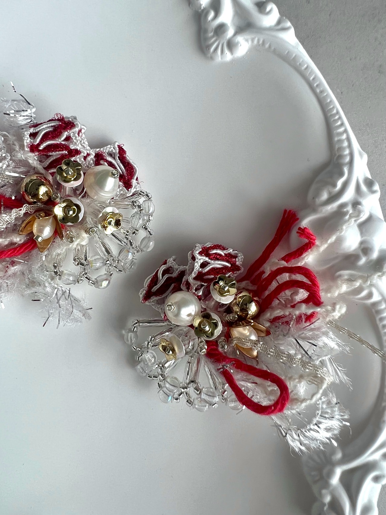 一つ一つ丁寧に縫い付けたオリジナルアクセサリー